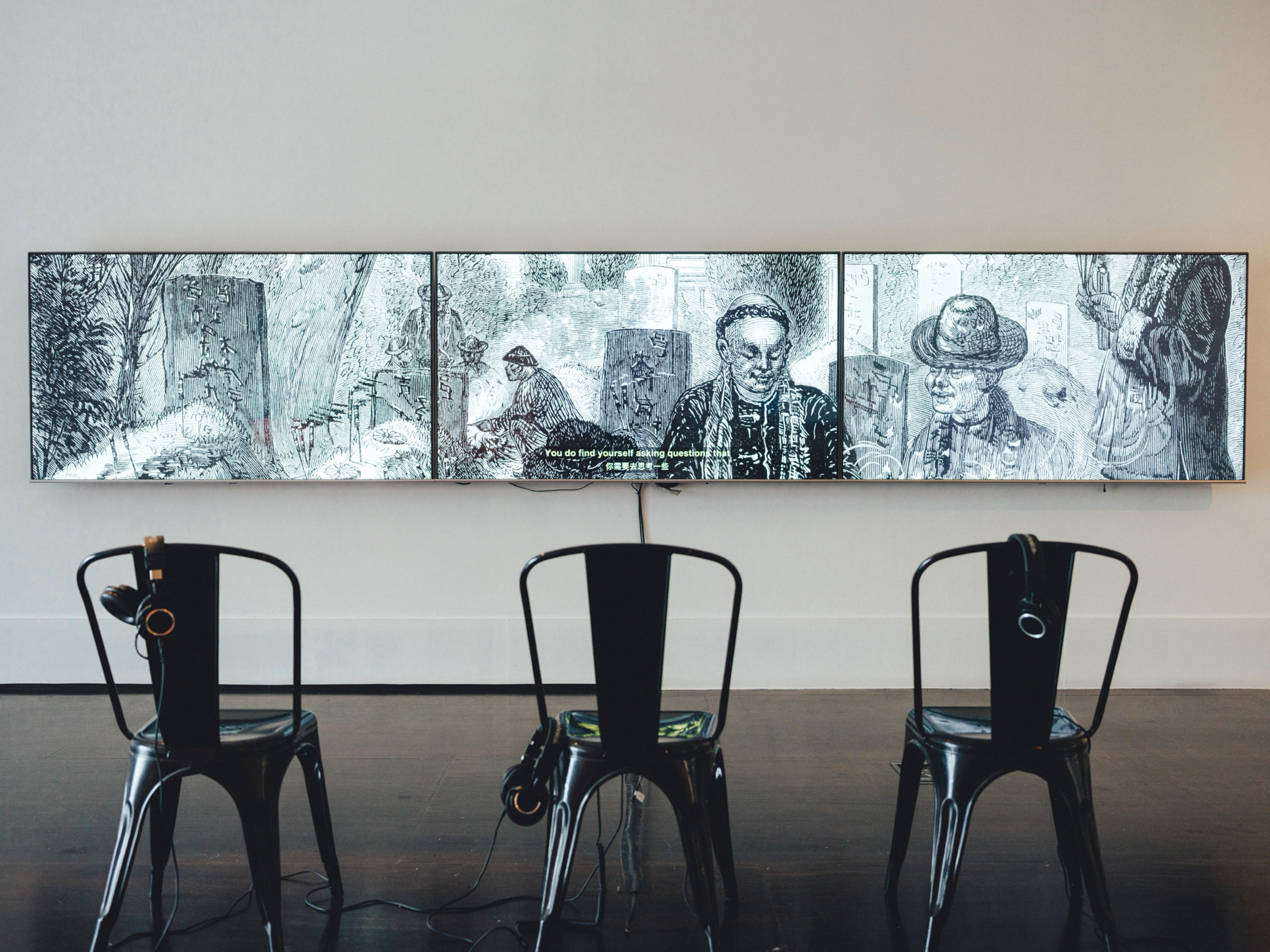Triptych moving-image with sound